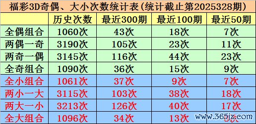 奇偶、大小分析:在最近50期开奖中,全偶组合开出7次,现时遗漏0期、两偶一奇组合开出11次,现时遗漏4期、两奇一偶组合开出23次,现时遗漏1期、全奇组合开出9次,现时遗漏5期,本期提防两奇一偶组合;全小组合出现7期,现时轮空0期、两小一大组合出现18期,现时轮空6期、两大一小组合出现17期,现时轮空2期、全大组合出现8期,现时轮空1期,本期看好开出两小一大组合。